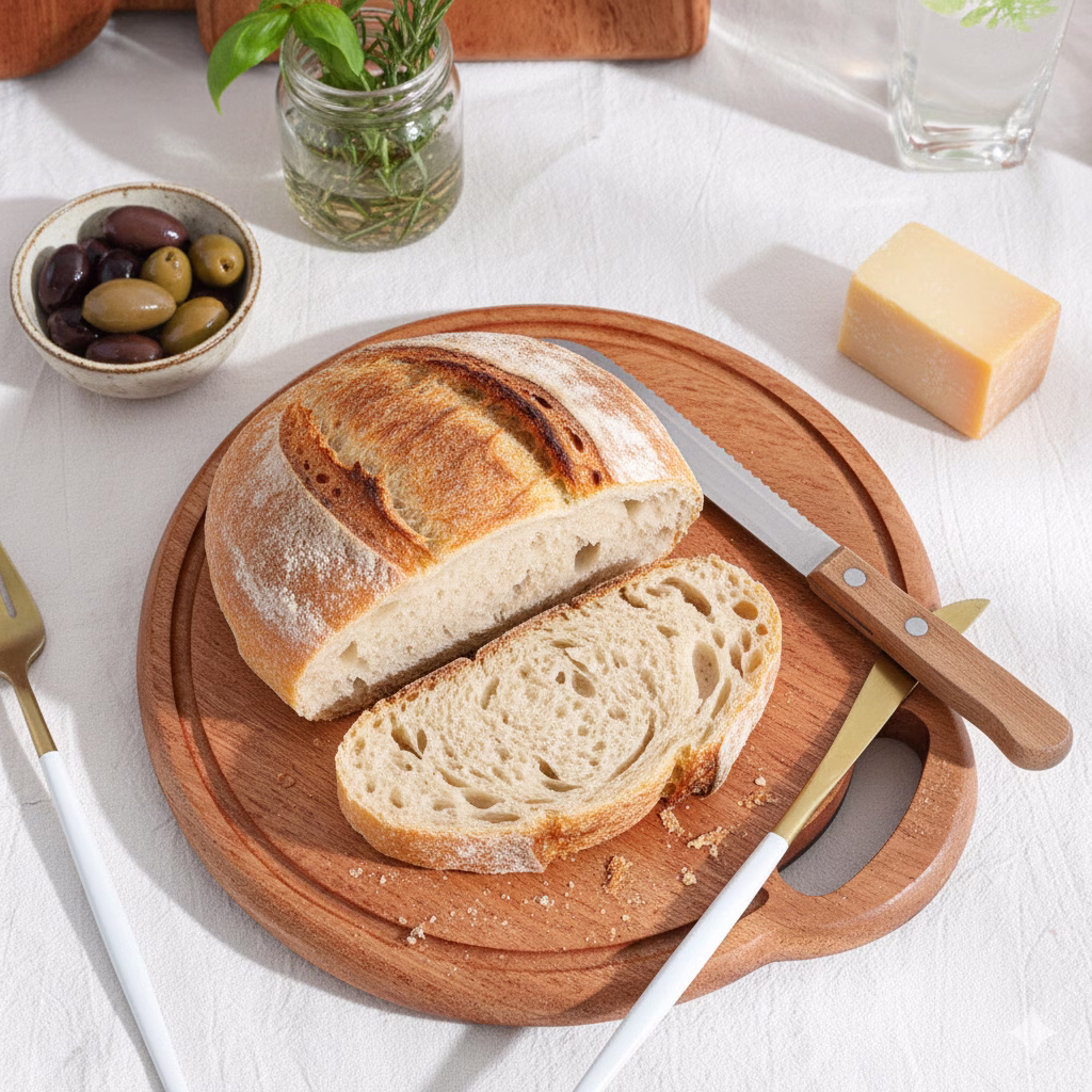 作為下午茶或餐盤使用,擺放麵包、起司或水果進行擺拍;適合少量輕食或蔬果的處理。圓潤外型也適合擀麵糰或製作披薩。